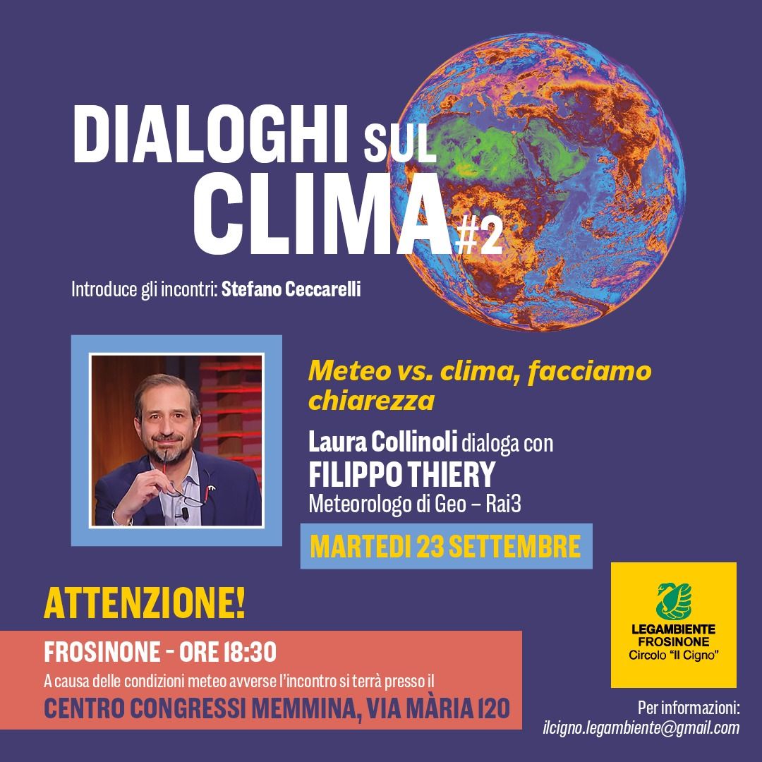 - 23 settembre 2025: conferenza sul tema "Meteo VS Clima, facciamo chiarezza" nell'ambito del ciclo di incontri “Dialoghi sul Clima”, organizzato dal circolo Legambiente di Frosinone "il Cigno".