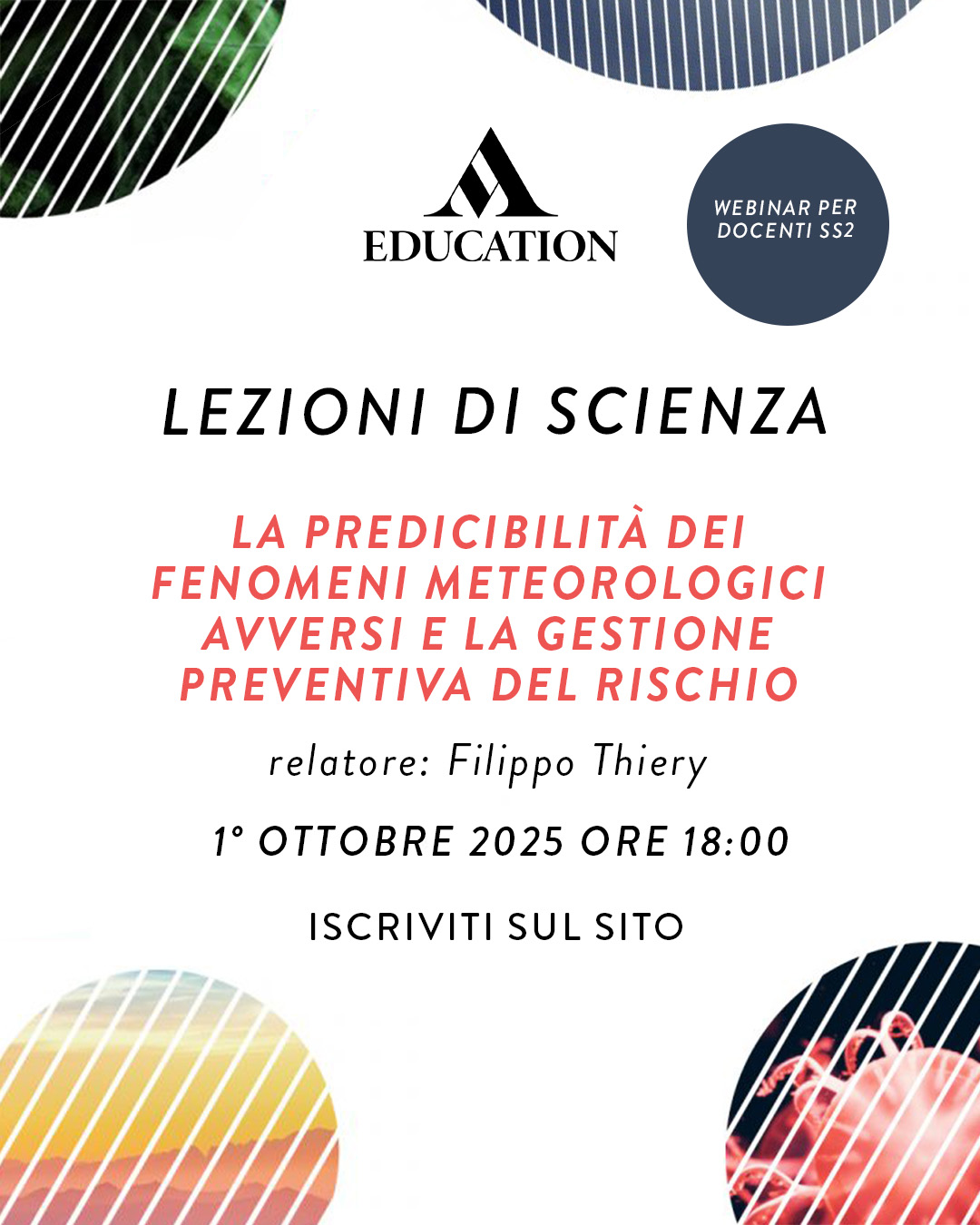 - 01 ottobre 2025: "La predicibilità dei fenomeni meteorologici avversi e la gestione del rischio in era di crisi climatica", webinar di formazione per docenti di scuola secondaria superiore nell'ambito delle "Lezioni di Scienza" della Mondadori Education.